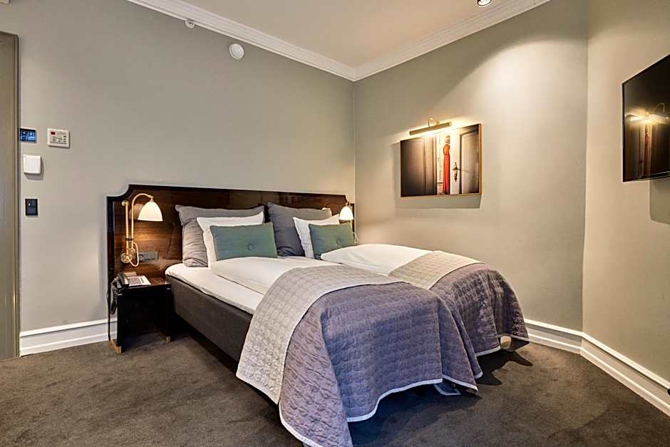 This modern room features a TV, mini-bar and private bathroom. These rooms face either the street or atrium.